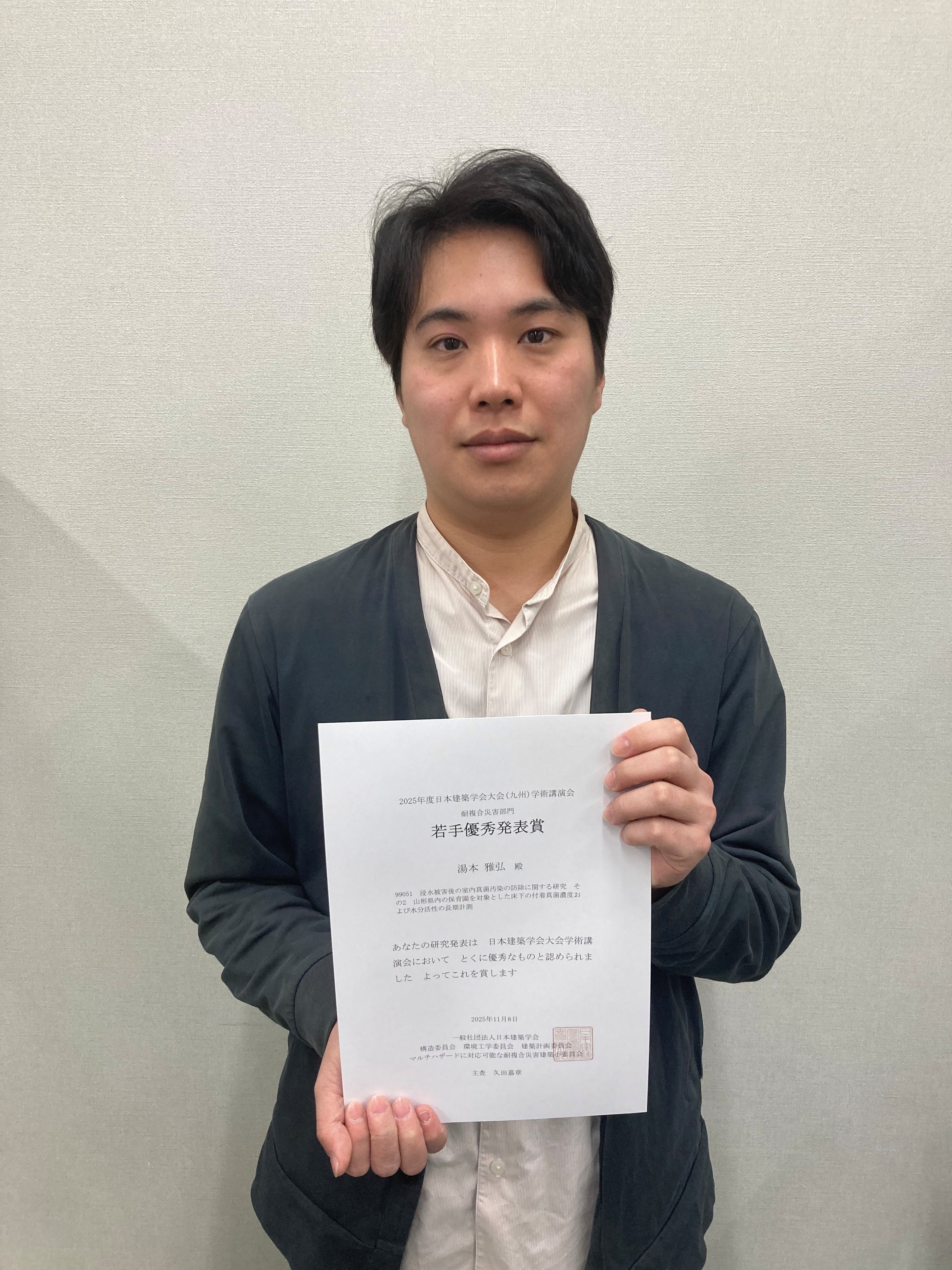 2025年日本建築学会大会(九州)学術講演会の若手優秀発表賞を受賞しました。