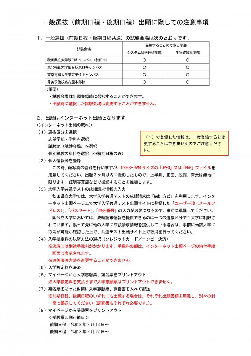 一般選抜 前期日程・後期日程(インターネット出願) <一般選抜(前期日程・後期日程)出願に際しての注意事項> トラブルなくインターネット出願を行うために、はじめにお読みください。 インターネット出願ページ(出願期間:2026.1.26~2026.2.4) インターネット出願マイページ