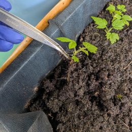 樹の条件を揃えるために、試験で使用する’ふじ’、’ジョナゴールド’の樹を全摘果しました。