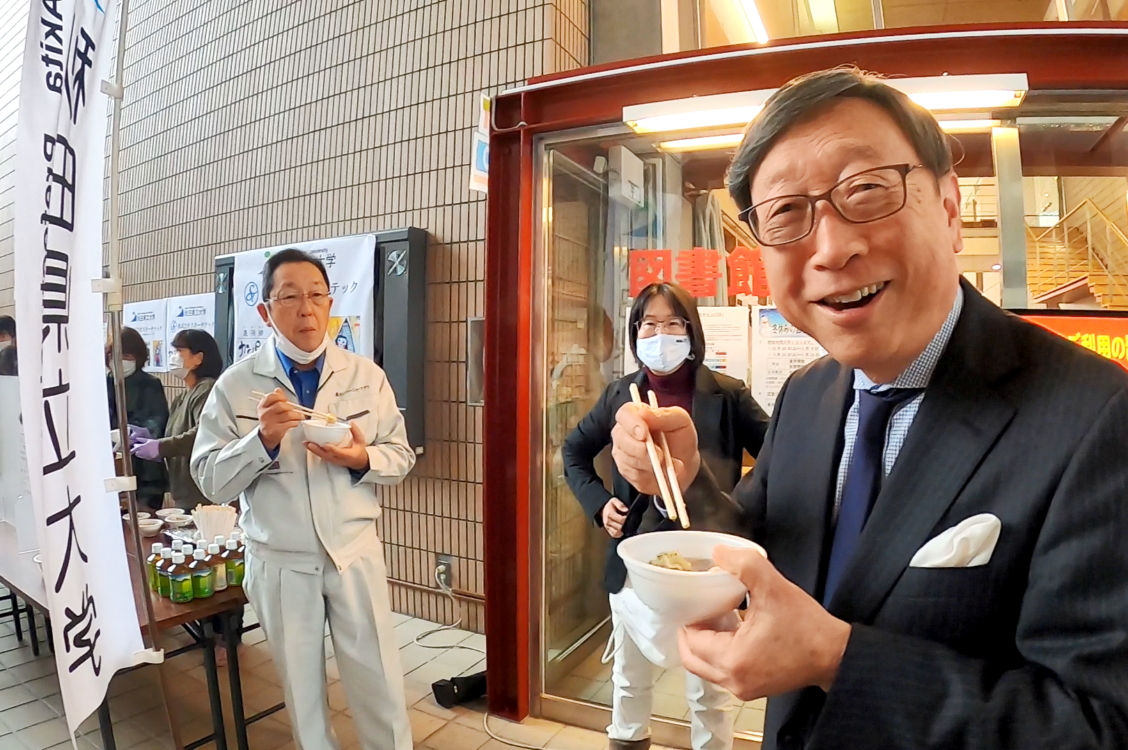 『まんぷくすらり』を使った「きりたんぽ」と「味噌」がお披露目されました