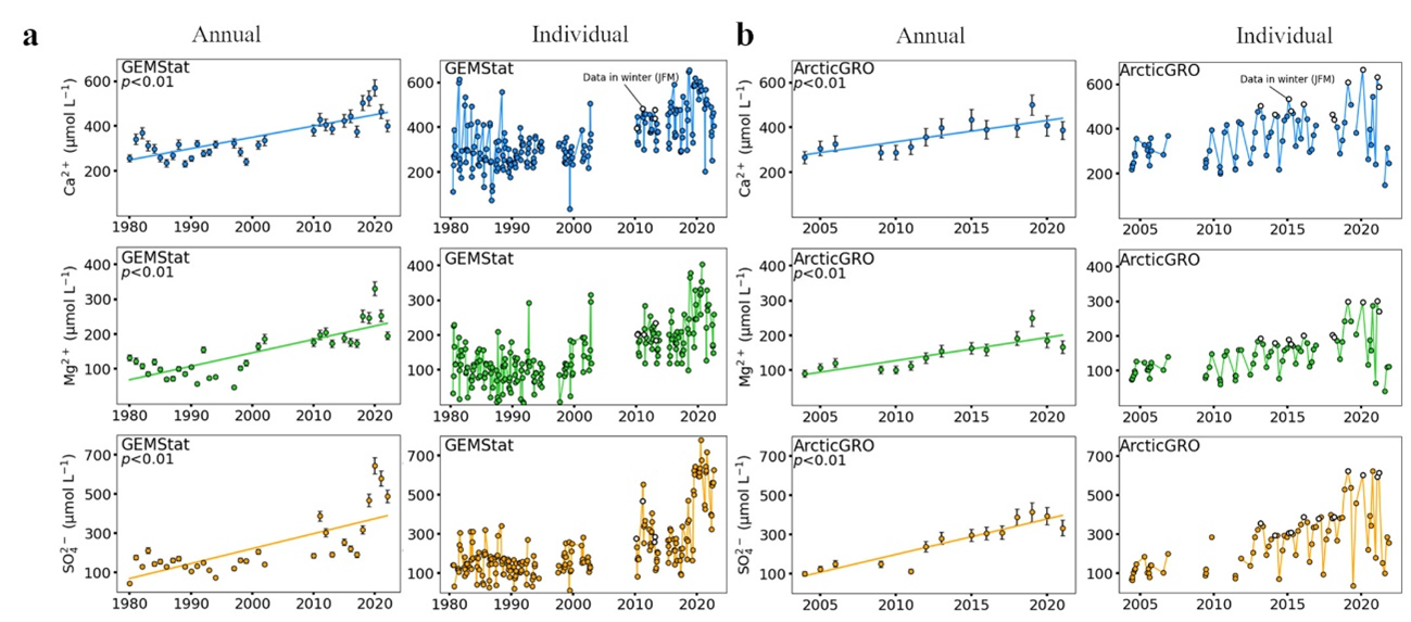 【北極域研究】長期データが解き明かす北極圏の環境変化永久凍土融解により河川水の風化由来イオン濃度が上昇
