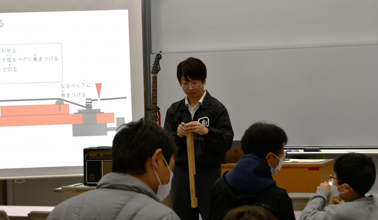 12月7日(土)本荘キャンパスにて、第3回目となる創造工房クラブ活動を実施しました。今回は、秋元 浩平 助教(知能メカトロニクス学科)による、「エレキギターをつくってみよう!」というテーマで実施しました。