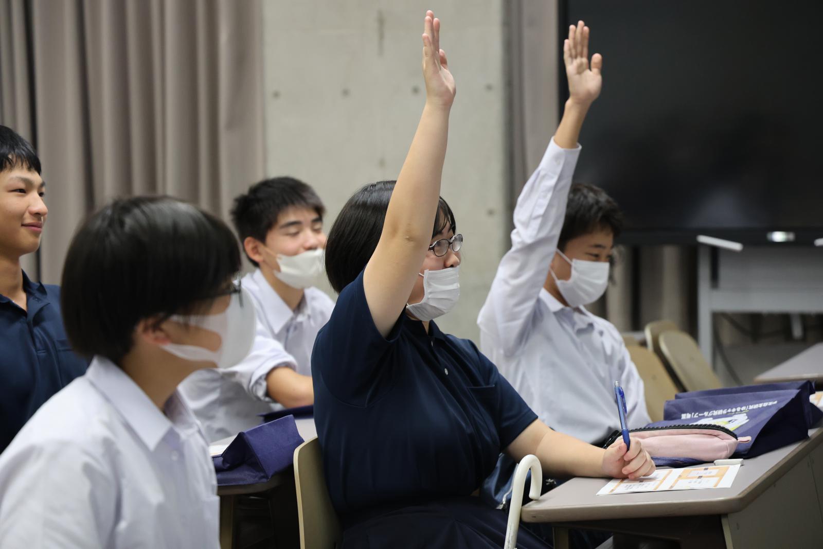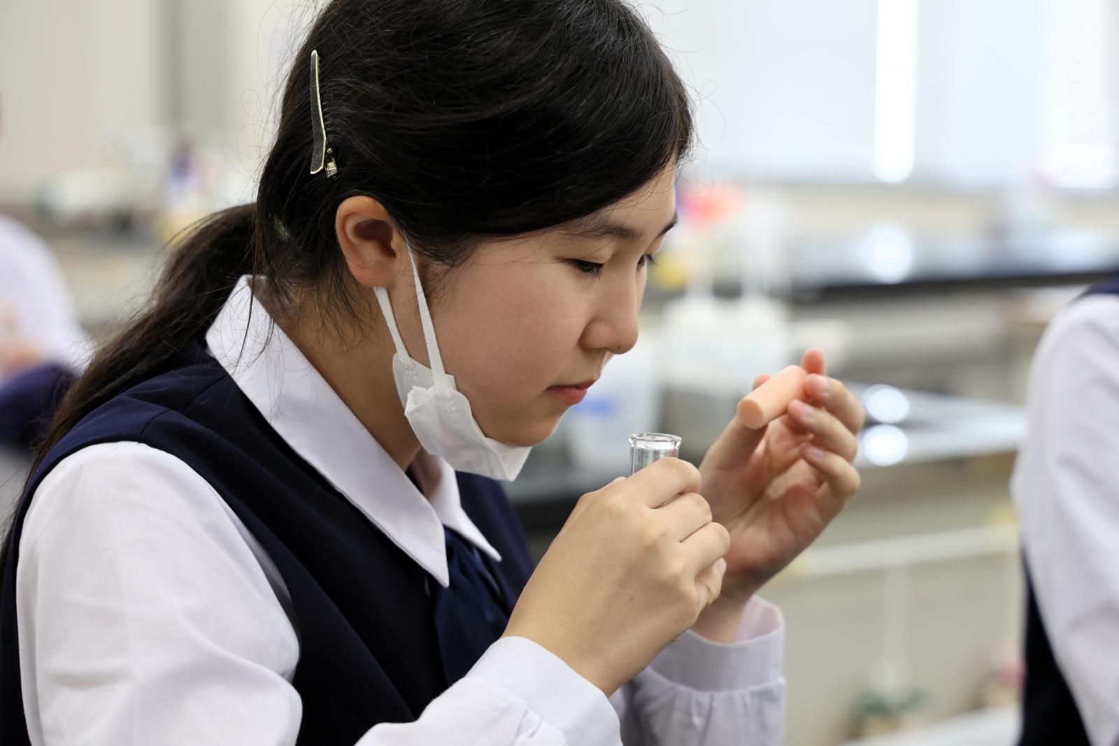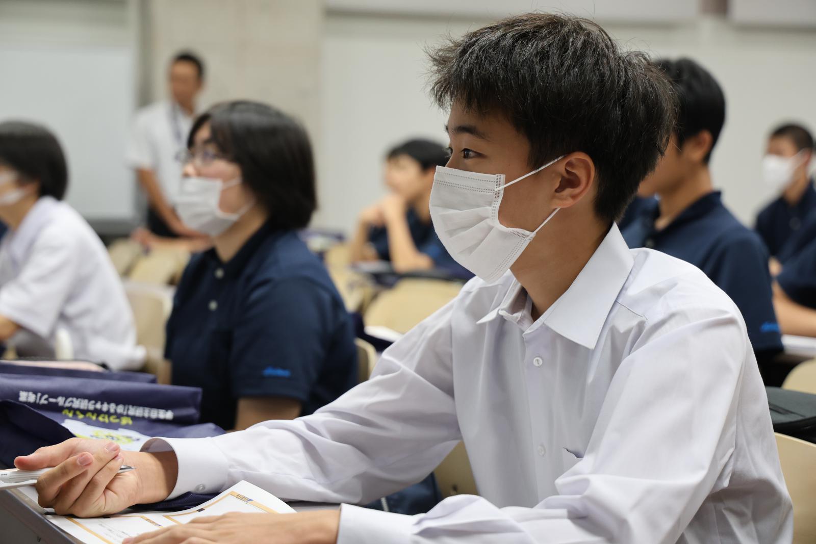 今回の見学は、総合的な学習の時間における上級学校訪問として実施され、生徒の進路学習を深めることを目的として実施されました。大学職員による大学概要説明、教員による模擬講義、そして施設見学を実施しました。生徒たちは、普段大学生が利用している実験室で専門的な授業に触れるなど、大学ならではの学びや研究環境を具体的にイメージできる貴重な機会となりました。模擬講義