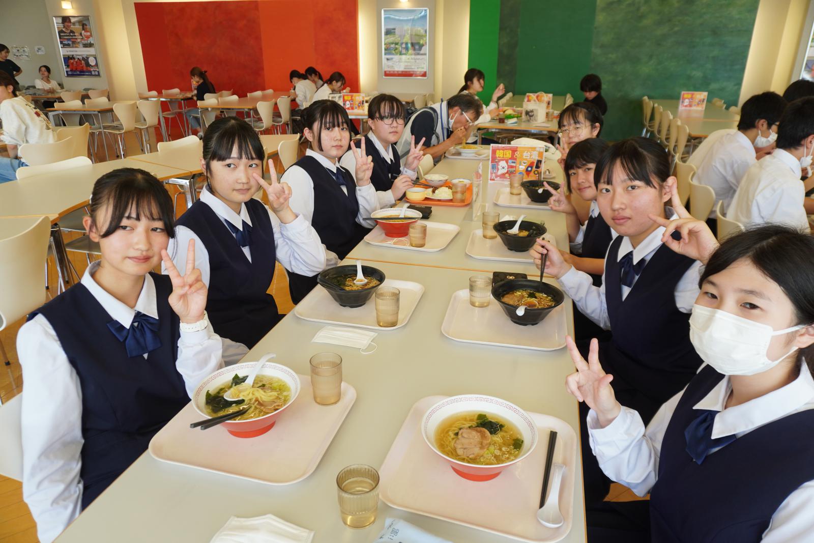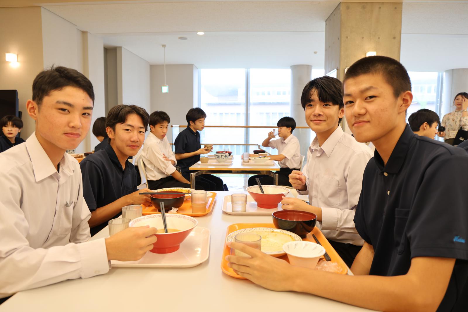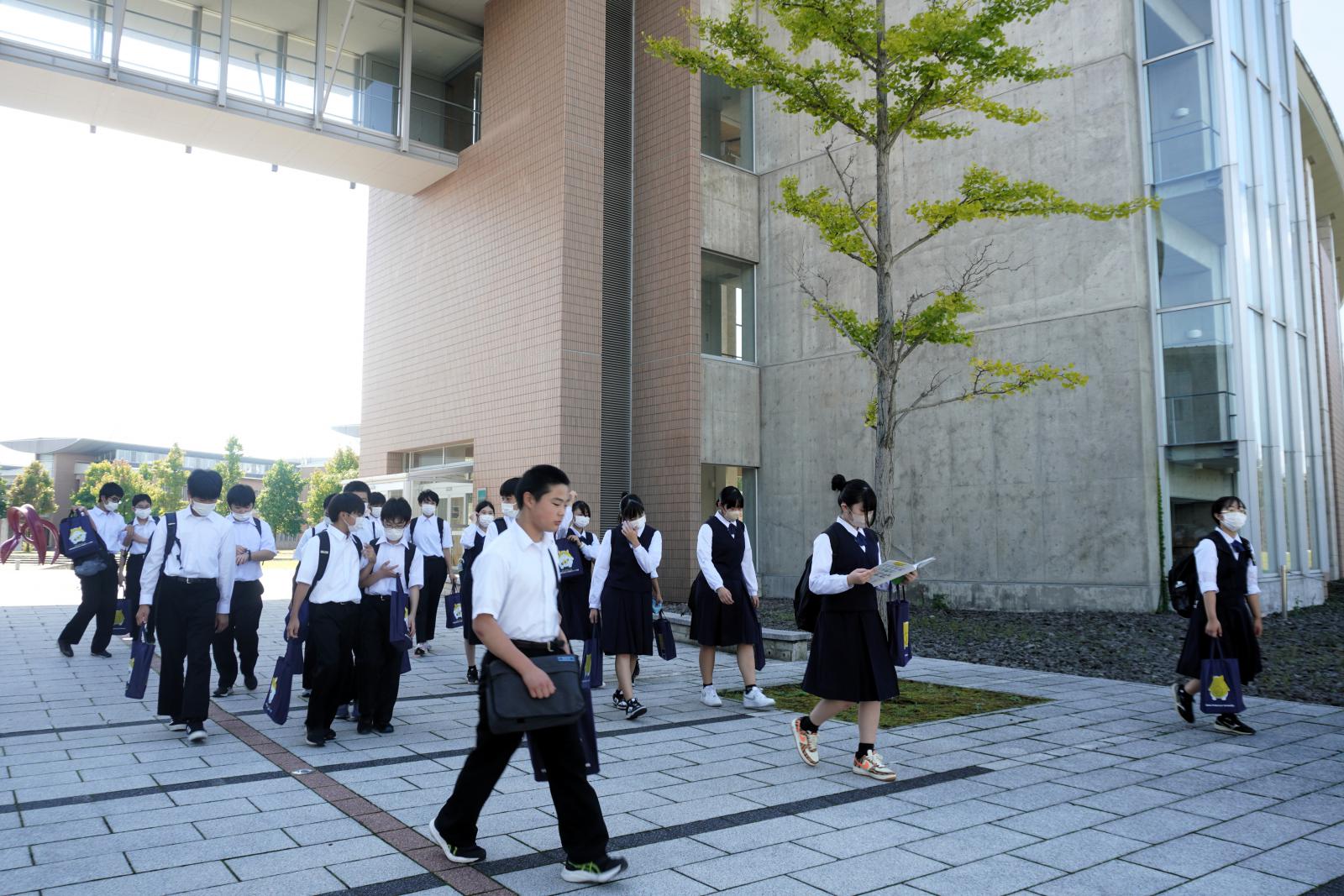 今回の見学は、総合的な学習の時間における、生徒のキャリア学習の一環として実施されたものです。大学職員による概要説明を受けた後、学食体験や施設見学を実施し、本学の研究や教育に関する施設を実際に見聞したり、教員との交流やカフェテリアでの学食体験などキャンパスライフの一端を体験しました。大学概要説明