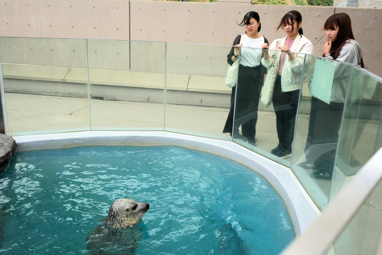 館内にある男鹿の海を一望できるレストランにて昼食をとったあと、ハタハタなど秋田ならではの展示やホッキョクグマなど見どころ満載の水族館を見学しました。