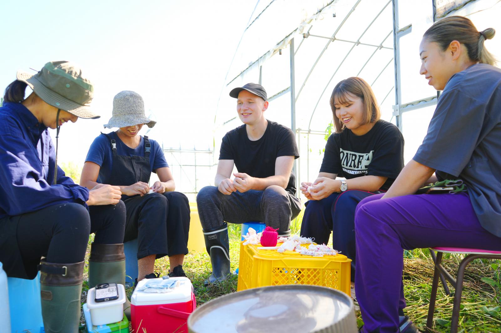 左から、地域おこし協力隊の若狭晴香さん/大潟村国際交流員マティさん/ Beginners 馬場彩花さん/三村保翔さん/地域おこし協力隊の佐藤裕奈さん