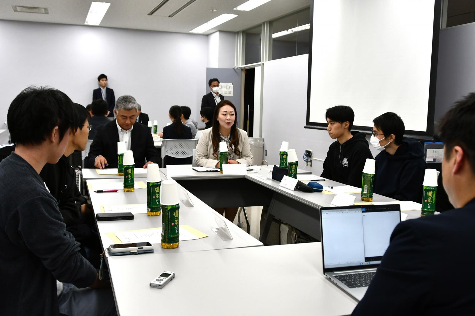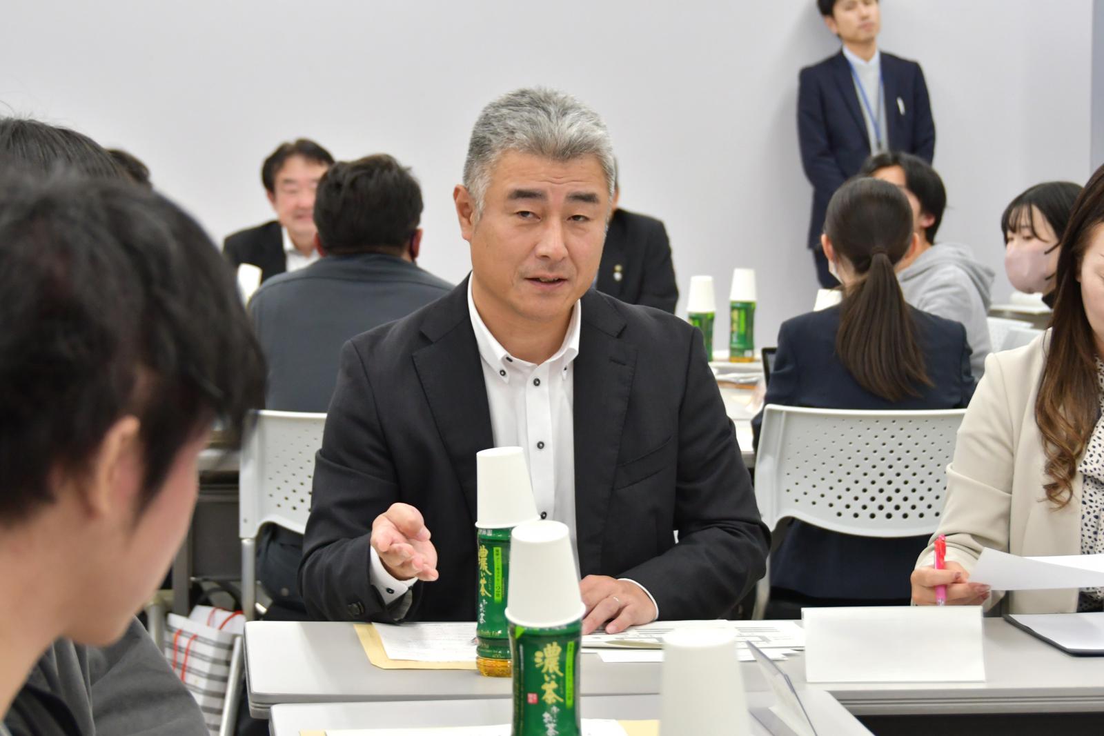今回は「人材確保の取り組みについて」をテーマに、学生と企業関係者が2グループに分かれて意見交換を行いました。