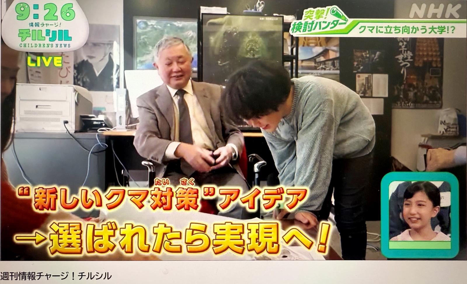 令和8年1月10日(土)、NHK総合テレビのニュース情報番組『週刊情報チャージ!チルシル』のコーナーで、昨今極めて深刻な社会問題となっている「クマ被害」に対し、テクノロジーの力と柔軟なアイデアで解決を目指す「Bear-Tech Solution コンテスト」の取り組みが紹介されました。