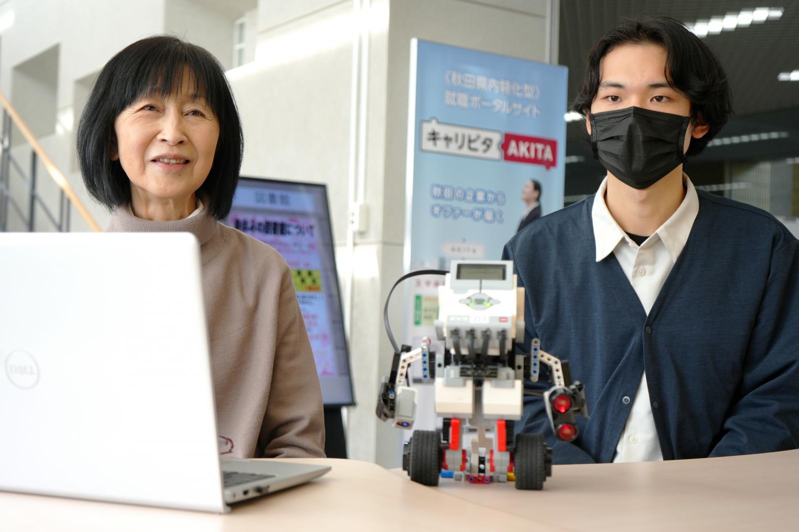 1月に自身初のプログラムを書き上げ、初めての動作確認に臨みましたが、ロボットは沈黙したままでした。それでも「失敗こそ学びの醍醐味」と語る山本さんは、研究室の“先輩”である同学科4年生の夛々 礼(ただ れい)さんの助言を頼りに、一歩ずつ原因を探り、改良に改良をを重ねてきました。
