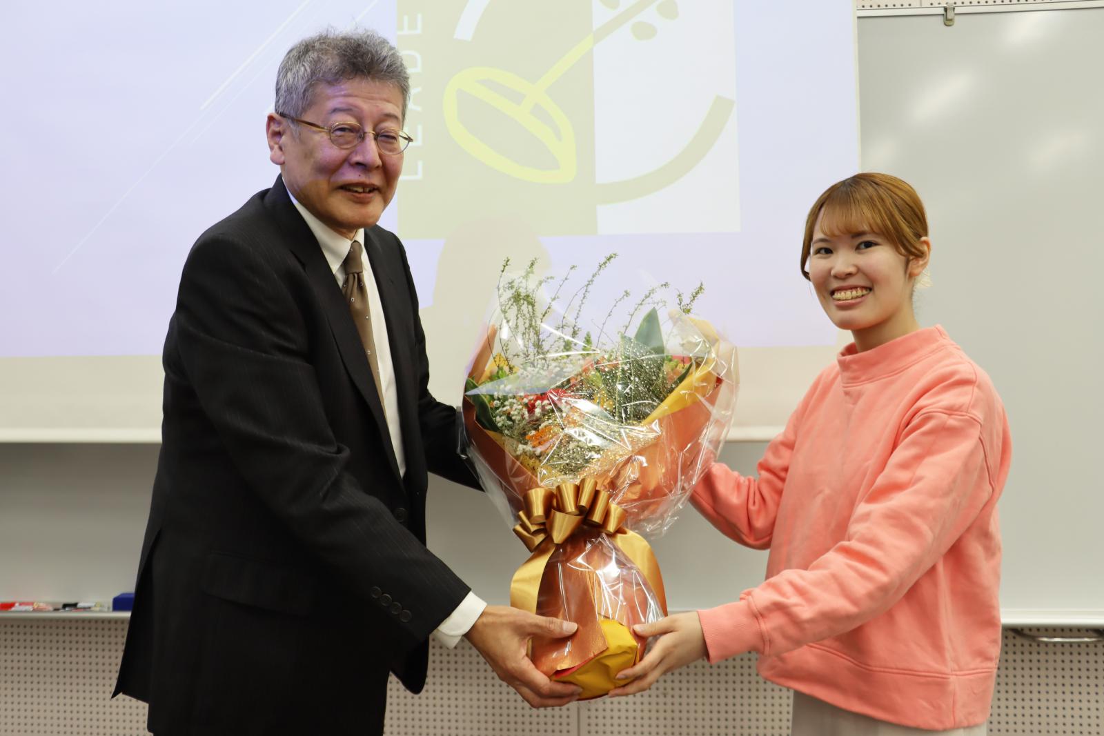 感謝を込めて花束が贈呈されました
