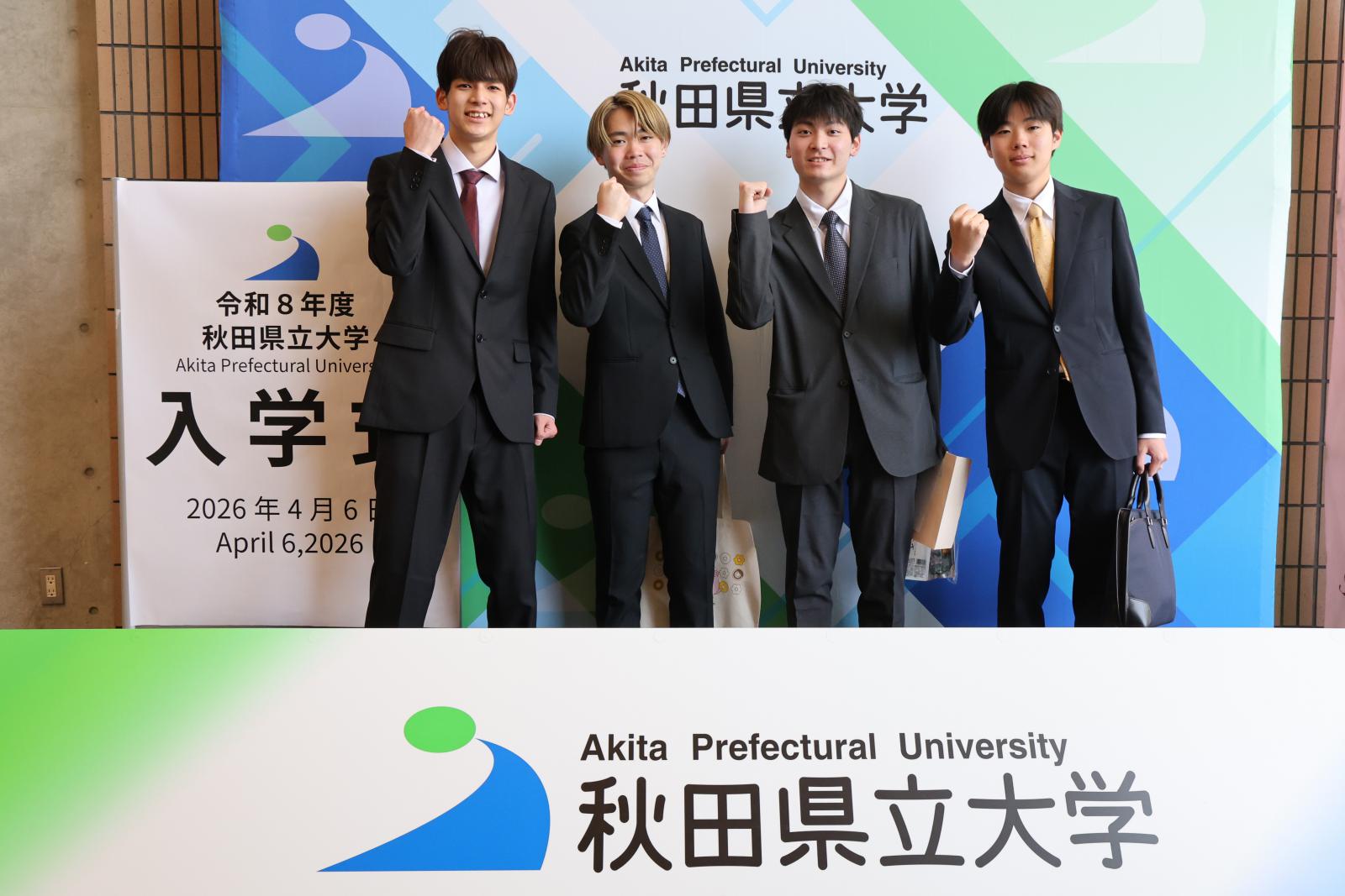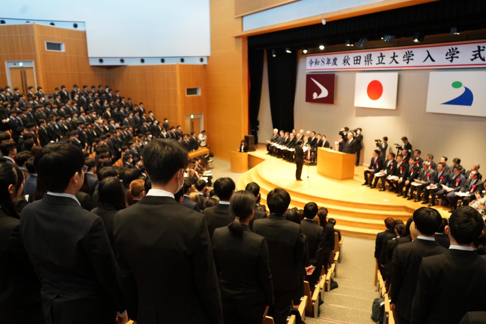福田裕穂学長は式辞の中で、「人口減少や産業構造の転換といった秋田の課題は、世界が直面する課題の縮図です。秋田で解決策を見出すことは、世界で通用する知を創ることと同義です。地方にいるからこそ向き合える本質的な問いがここにはあります。本学のビジョンである「知の器を広げる」教育のもと、世界へ羽ばたく力を蓄えてください。どうか本学で、タフに、優しく、挑戦的に、知の器を広げてください。皆さんが秋田県立大学で大きく成長し、未来の秋田、日本、そして世界を創造するプロフェッショナルへと羽ばたくことを心から願っています。」と新入生へメッセージを贈りました。