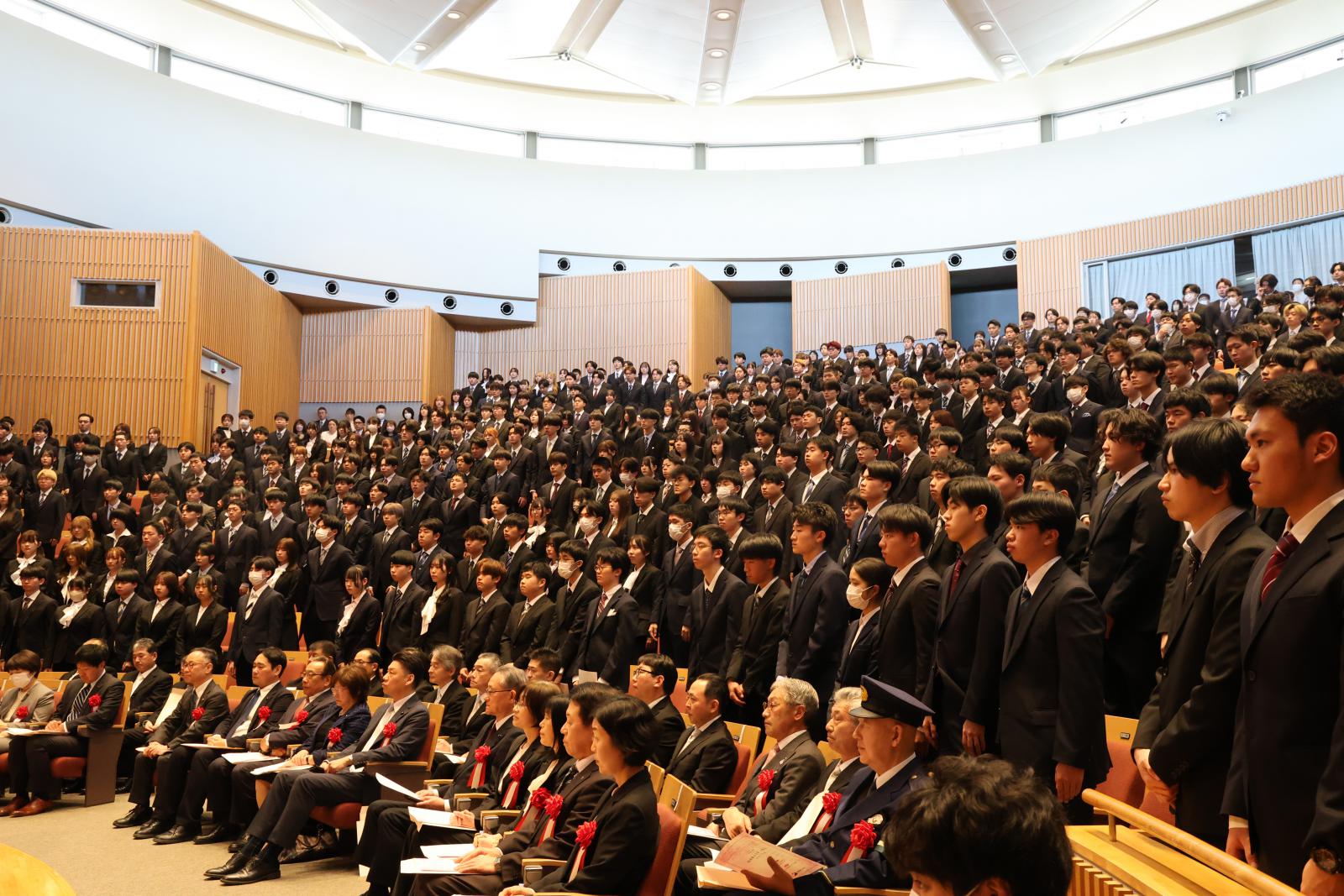秋田から未来を創る。日本を変える。世界に影響を与える。それは決して誇張ではありません。この会場にいる一人ひとりが、その可能性を持っています。どうか本学で、タフに、優しく、挑戦的に、知の器を広げてください。私たちは、皆さんを本気で支えます。皆さんが秋田県立大学で大きく成長し、未来の秋田、日本、そして世界を創造するプロフェッショナルへと羽ばたくことを心から願い、式辞といたします。