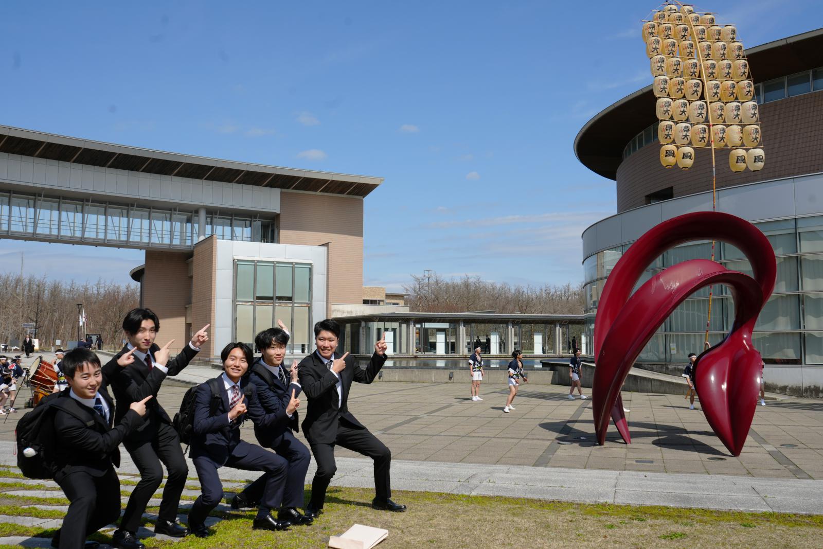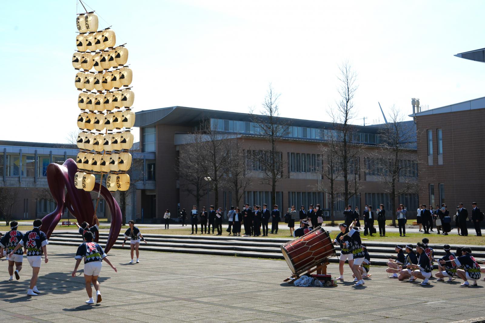 竿燈会が新入生歓迎の演技を披露(秋田キャンパス)